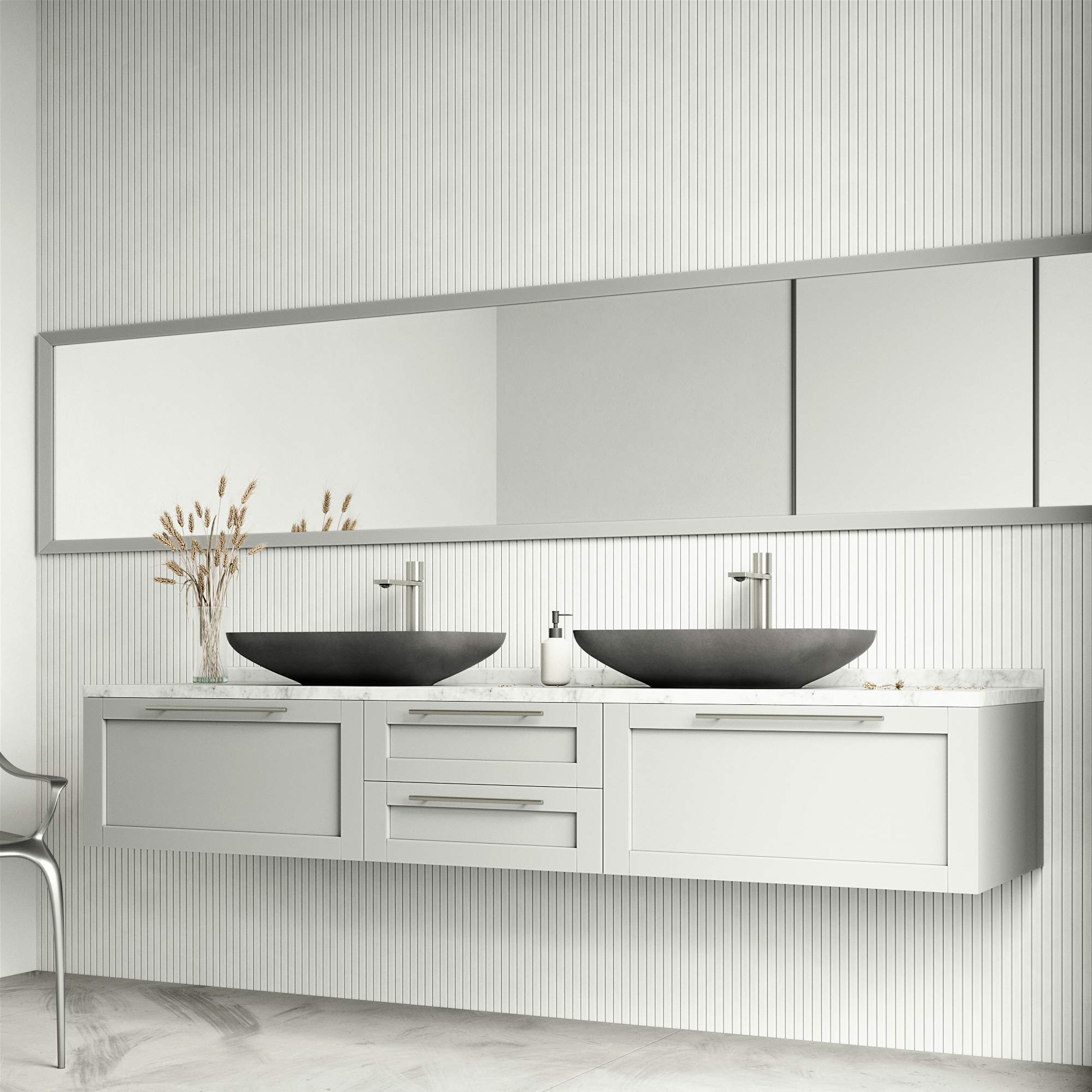 - CONCRETO STONE: Featuring a sleek gray concreto finish and robust construction, the Concreto Stone bathroom sink brings a touch of modern industrial appeal to any bathroom.,