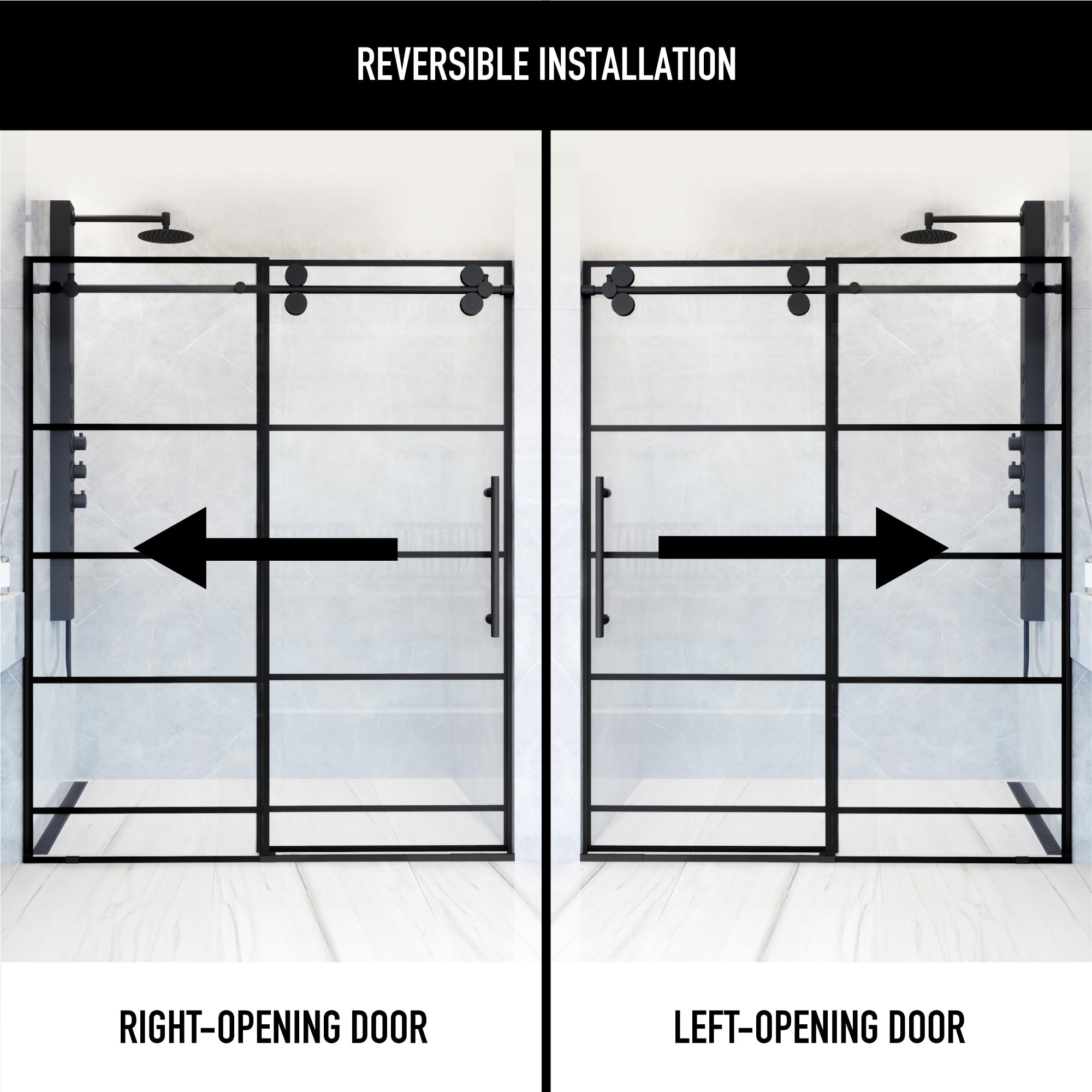 - DIMENSIONS: The shower door spans 56-60 inches wide and 74 inches high, comes with 4 inches of sizing adjustability, can be installed for left or right opening, and provides 22-26 inches of entry space.