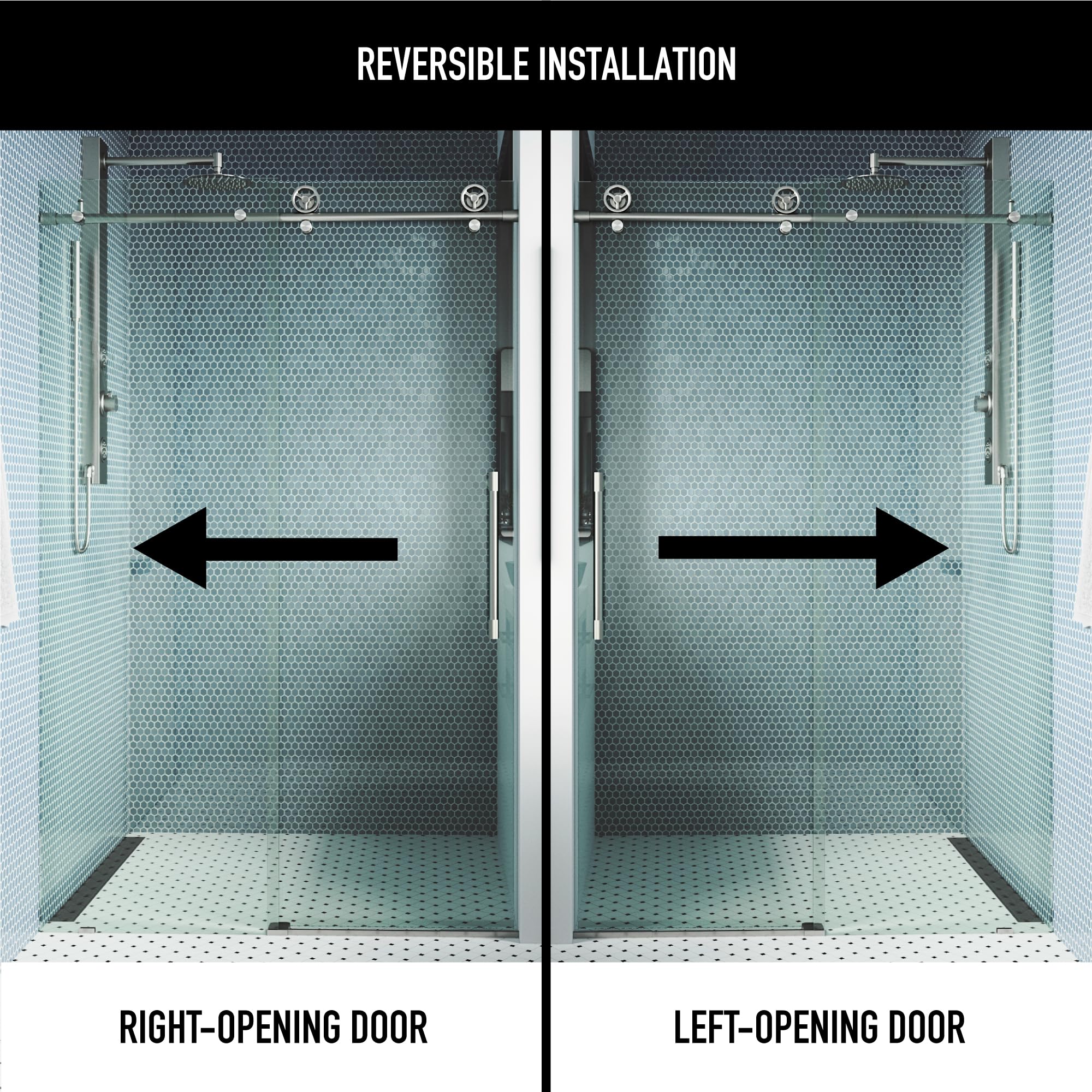 - STYLISH: The frameless design combines with aero-dynamic rollers and vertical door handles with interior knob to create an upscale bathroom focal point while offering easy access from both sides.