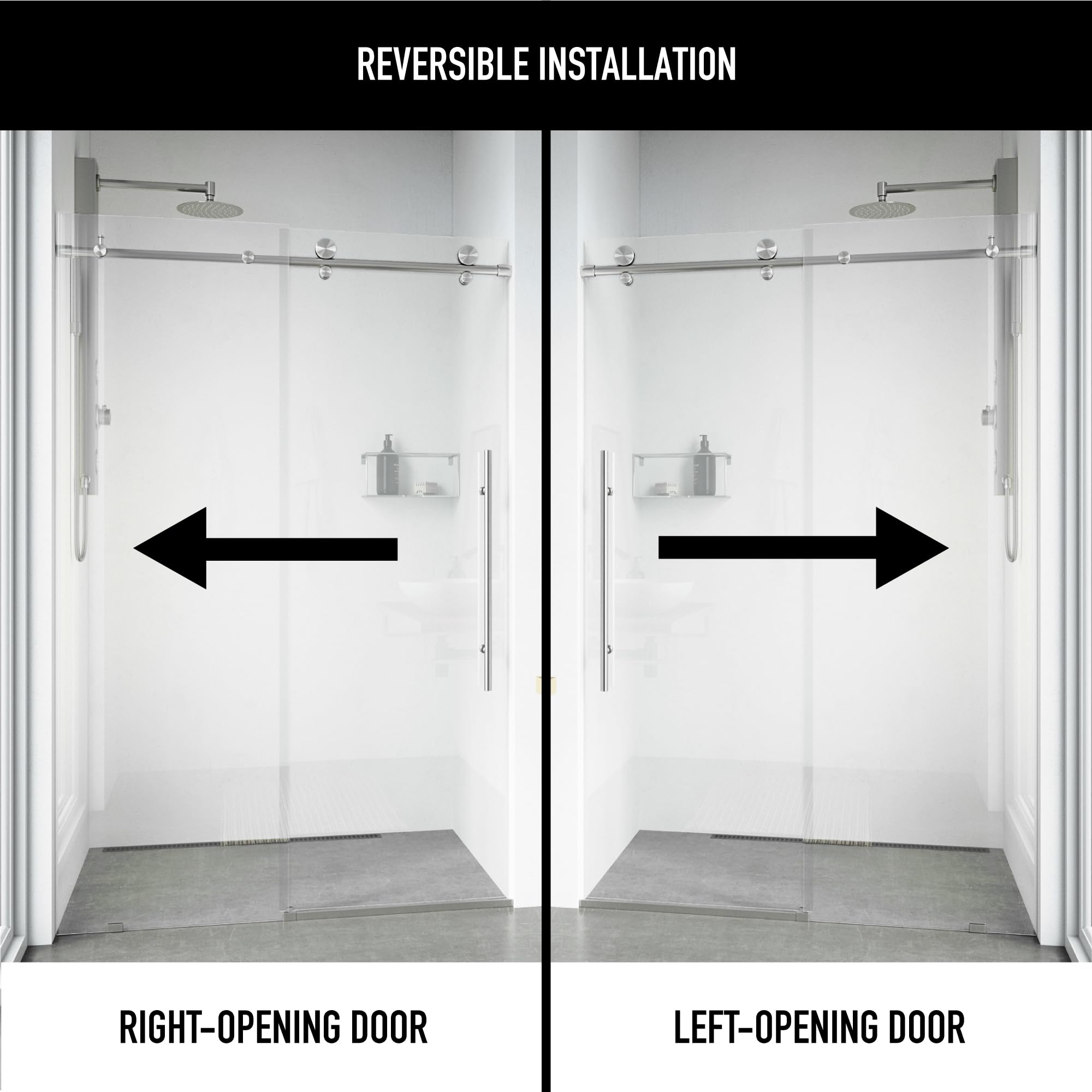- SMART-ADJUST: The advanced engineering enables 3/8-inch adaptability for enduring wall alignment while featuring reversible glass door installation options for either side opening.