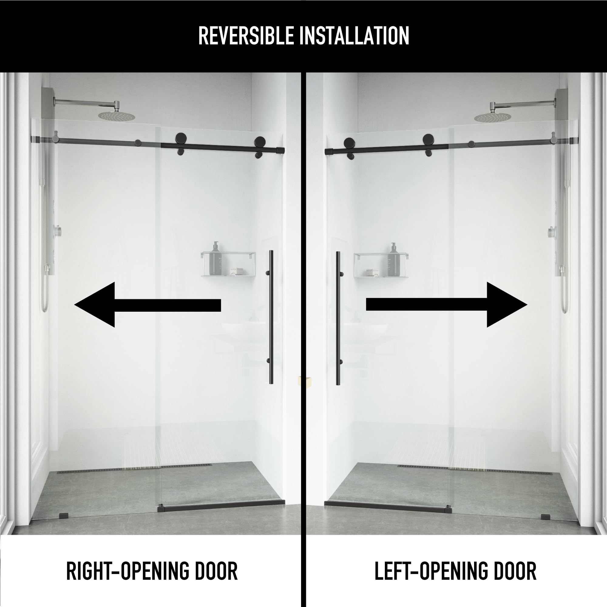 - WATERPROOF: Built with a threshold and seal strip along the glass, this frameless sliding shower door delivers excellent water resistance and prevents leaking to maintain a dry bathroom environment.