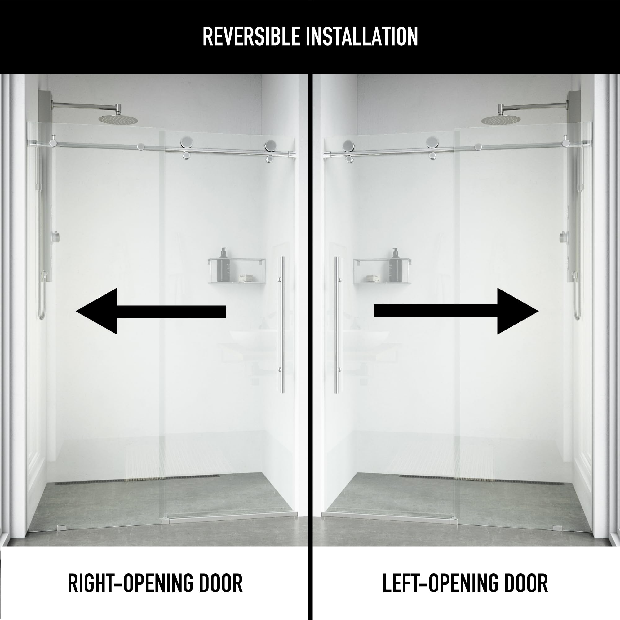- STYLISH: The frameless design combines with smooth rollers and a vertical handle featuring an interior knob to create a refined shower design that makes a sophisticated statement in any bathroom space.