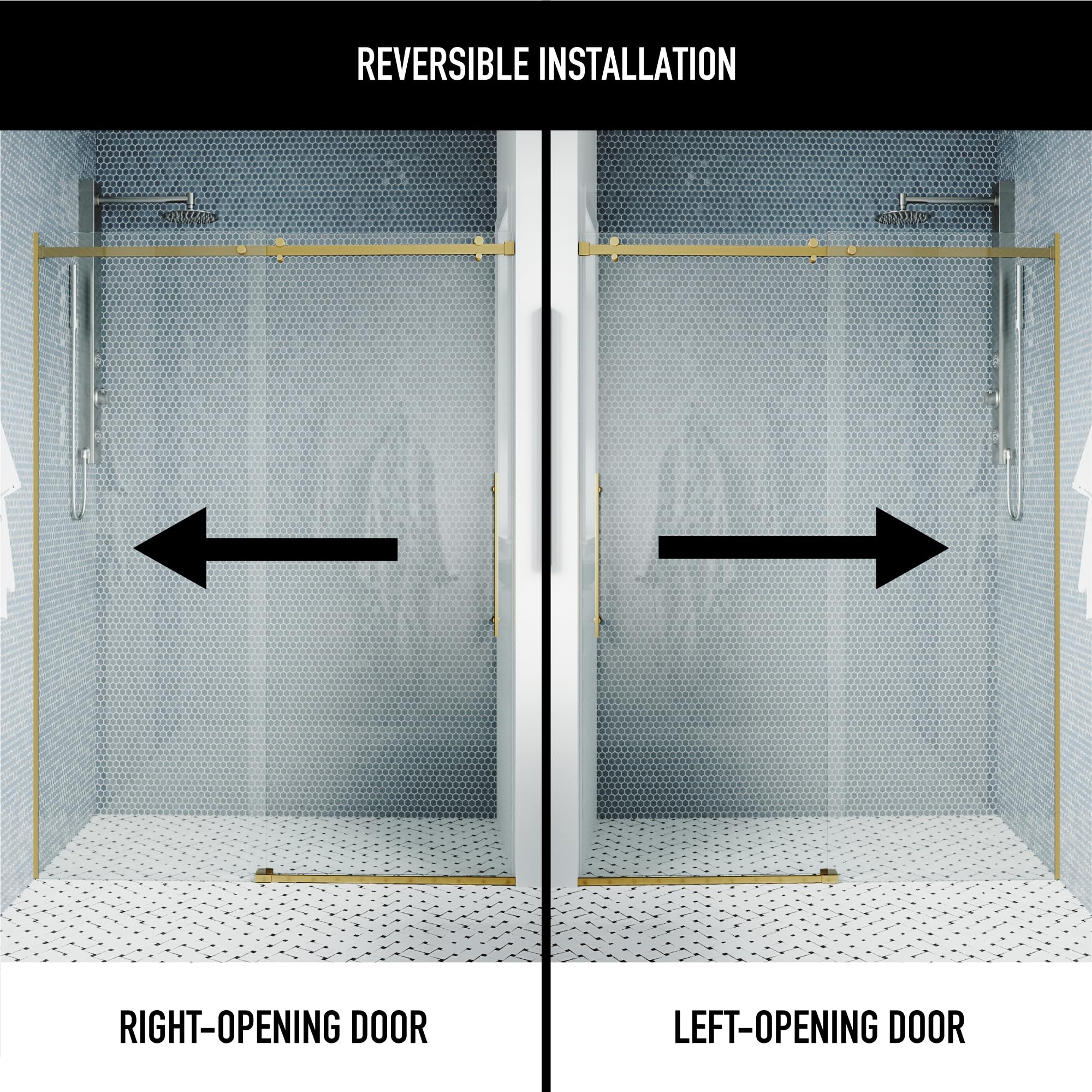 - VERSATILITY: This frameless glass shower door offers reversible installation for left or right side opening , with a spacious 23" to 27" walk-through width.