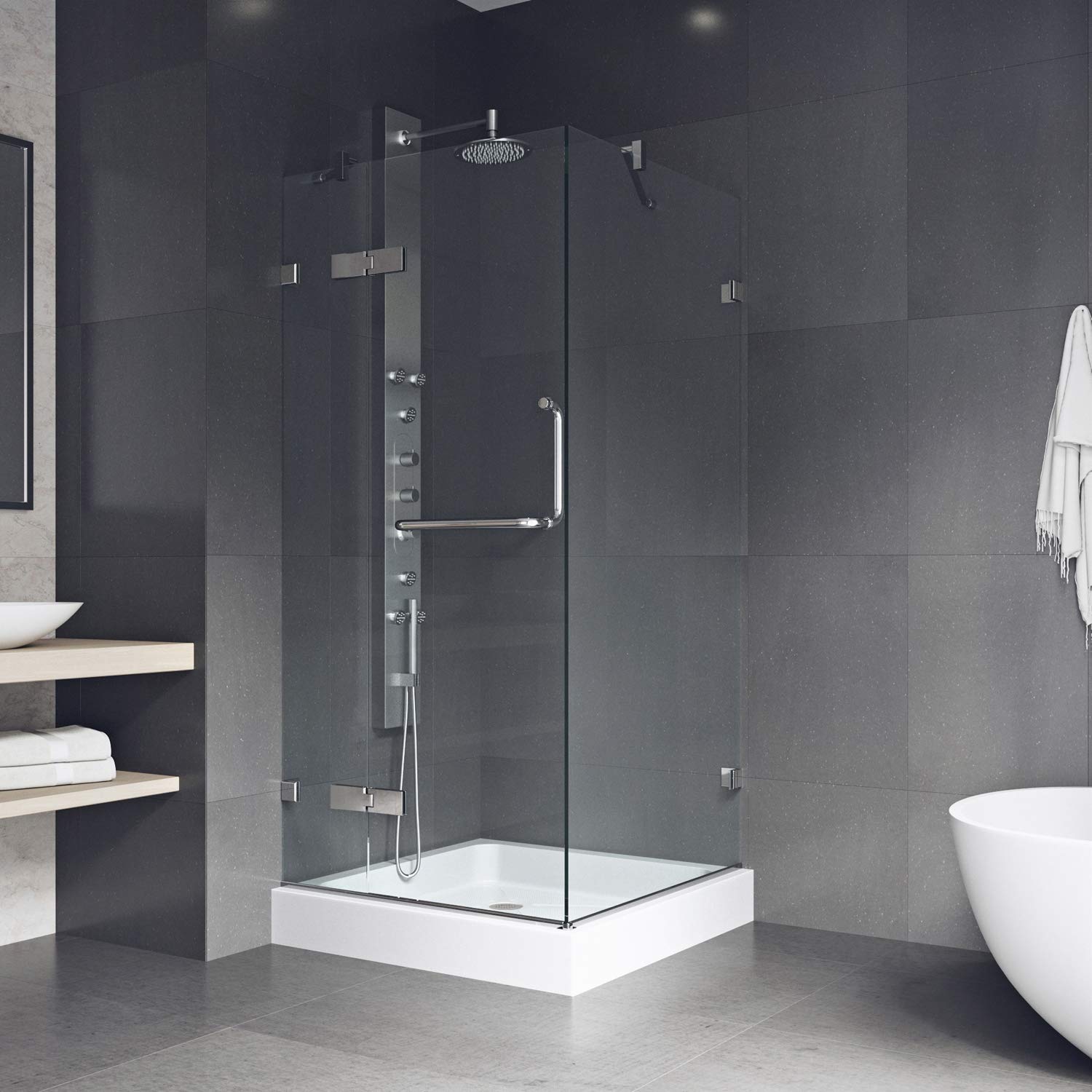 VIGO Monteray 32 in. L x 32 in. W x 79 in. H Frameless Hinged Square Shower Enclosure Kit in Chrome with 3/8 in. Clear Glass-VG6011CHCL32W