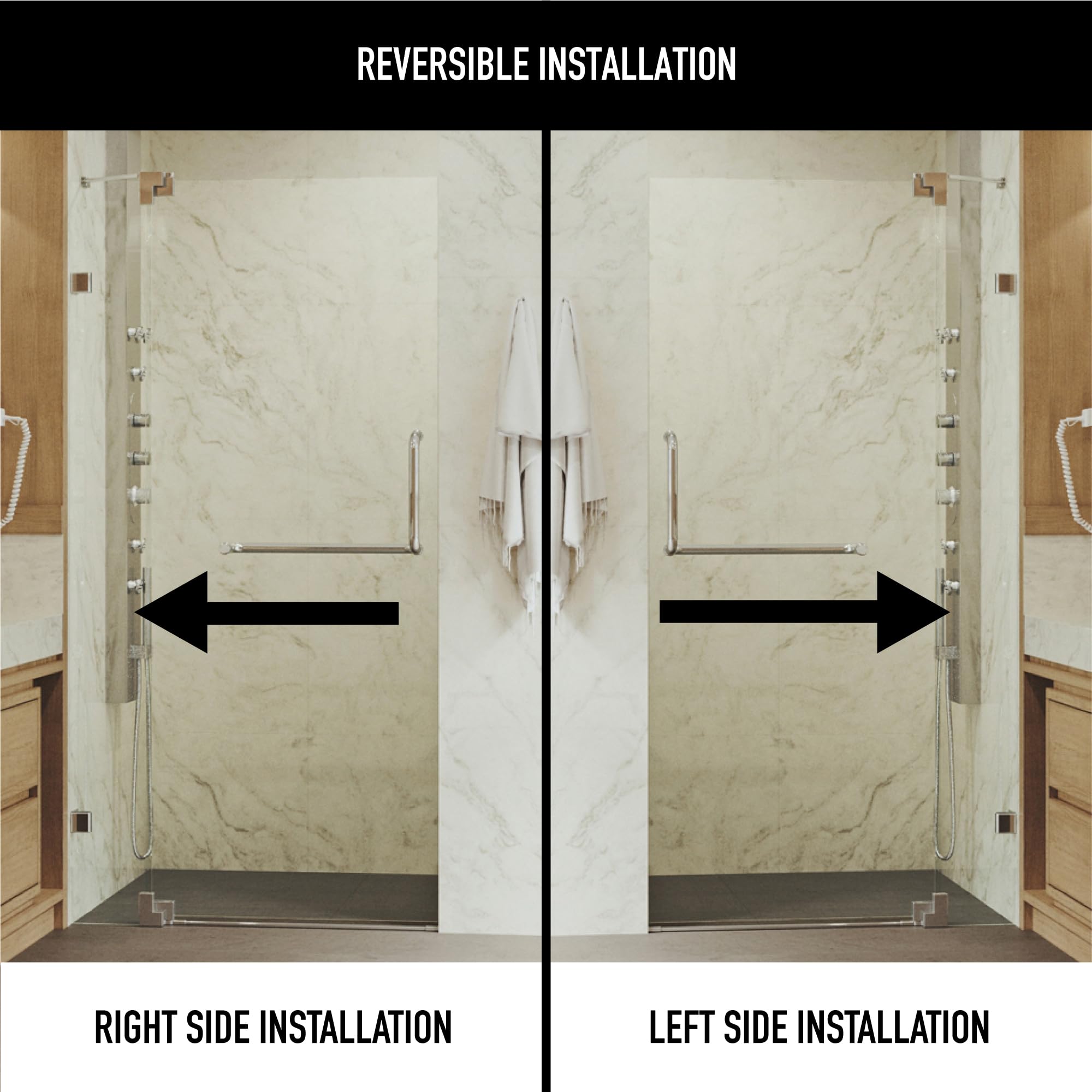 - FLEX-SIZING: This shower door accommodates up to 3/8-in of adjustability for out-of-plumb walls ensuring a perfect fit and long-lasting durability.